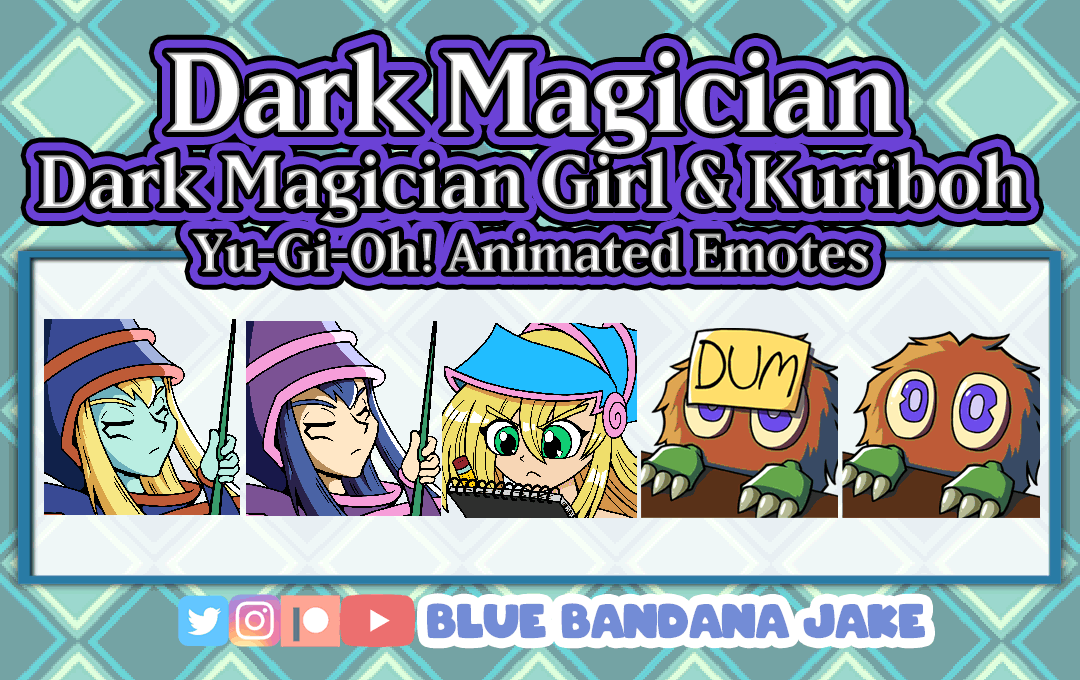 Three animated emotes + Two Static emotes for use on Twitch, YouTube, Discord or wherever else you want! Based on the Yu-Gi-Oh! cards "Dark Magician," "Dark Magician Girl," and "Kuriboh" the bonds between teacher and student will resonate between you and your chat! Two versions of Dark Magician included as well as two versions of Kuriboh!